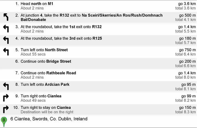 Directions from M1 to ATLAS Training 6 Cianlea, Swords, Co. Dublin, Ireland (Courtesy Google Maps)